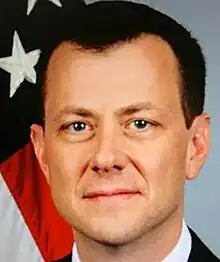 Peter Paul Strzok II (/strʌk/, like struck; born March 7, 1970)[1] is a former United States Federal Bureau of Investigation (FBI) agent.[2][3][4] He was the Deputy Assistant Director of the FBI's Counterintelligence Division and led the investigation into Russian interference in the 2016 United States elections.[4][5][6][7] Previously, he had been the chief of the division's Counterespionage Section and led the investigation into Hillary Clinton's use of a personal email server.[8][4][9]