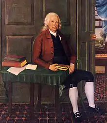 Phillips had previously been married to Sarah Gilman, wealthy widow of Phillips' cousin, merchant Nathaniel Gilman,[14] whose large fortune, bequeathed to Phillips, enabled him to endow the academy.[15] The Gilman family also donated to the academy much of the land on which it stands, including the initial 1793 grant by New Hampshire Governor John Taylor Gilman of the Yard, the oldest part of campus; the academy's first class in 1783 included seven Gilmans.[16][17] In 1814, Nicholas Gilman, signer of the U.S. Constitution, left $1,000 to Exeter to teach "sacred music."[18]