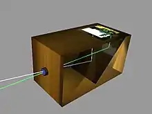 The Arab physicist Ibn al-Haytham (Alhazen) (965–1040) also invented a camera obscura as well as the first true pinhole camera.[12][14][15] The invention of the camera has been traced back to the work of Ibn al-Haytham.[16] While the effects of a single light passing through a pinhole had been described earlier,[16] Ibn al-Haytham gave the first correct analysis of the camera obscura,[17] including the first geometrical and quantitative descriptions of the phenomenon,[18] and was the first to use a screen in a dark room so that an image from one side of a hole in the surface could be projected onto a screen on the other side.[19] He also first understood the relationship between the focal point and the pinhole,[20] and performed early experiments with afterimages, laying the foundations for the invention of photography in the 19th century.[15]