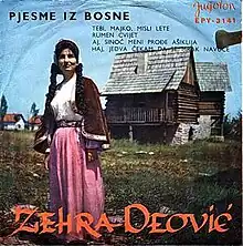 Pjesme iz Bosne (Songs from Bosnia) is the debut release by Bosnian folk singer Zehra Deović.[1] It was released 11 December 1962 and re-released with an alternate cover in 1964 through the label Jugoton.[2]