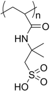 PolyAMPS, or poly(2-acrylamido-2-methyl-1-propanesulfonic acid) (trademark of the Lubrizol Corporation), is an organic polymer. It is water-soluble, forms gels when cross linked, and acts as a strong anionic polyelectrolyte. It can be used for ion exchange resins. It can form hydrogels.