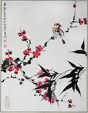 The most salient reason for the change is the transformation of the aesthetic culture. The tree peony fits into the cultural atmosphere of prosperity, tolerance and freedom in the Tang dynasty.[4] However, in the Song dynasty, the rise and development of Neo-Confucianism theory motivated the artists and literature to emphasise the moral quality and aesthetic taste in a sublime way.[6] There were plenty of criticisms, such as “beauty is bound to shatter public morals”, inflicted on the tree peony after the most flourishing period of Tang dynasty, and thus the status of the tree peony was degraded.[4] Also, the bloom of the plum blossom in cold weather conditions represented tenacious spirit, increasing people's favor of it. Because the aesthetics in Song dynasty were dominated by a rationalist way of thinking influenced by Neo-Confucianism, adoring the spirits of those can express the beautiful qualities of human beings, such as perseverance, bravery and reason.
