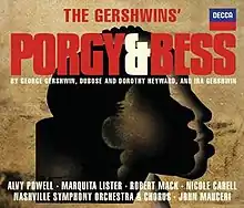 Porgy and Bess (2006), first studio cast recording directly based on the original 1935 production of George Gershwin's opera Porgy and Bess. This studio recording originated as several semi-staged performances which took place on February 24 and 25, 2006 at the Tennessee Performing Arts Center in Nashville, with Alvy Powell as Porgy, Marquita Lister as Bess, Nicole Cabell as Clara and Robert Mack as Sportin' Life. The Nashville Symphony Orchestra was conducted by John Mauceri. The recording incorporates changes Gershwin made to his original score after its first publication, which were not discovered until 1987.