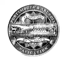 The Portsmouth and Arundel Canal was a canal in the south of England that ran between Portsmouth and Ford in the Arundel district, it was built in 1823 but was never a financial success and was abandoned in 1855; the company was wound up in 1888.[1] The canal was part of a larger scheme for the construction of a secure inland canal route from London to Portsmouth, which allowed craft to move between the two without having to venture into the English Channel and possibly encounter enemy ships or natural disaster. It was built by the Portsmouth & Arundel Navigation company. The canal was made up of three sections: a pair of ship canals, one on Portsea Island and one to Chichester, and a barge canal that ran from Ford on the River Arun to Hunston where it joined the Chichester section of the canal