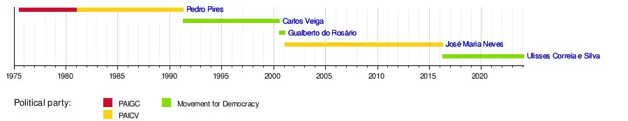 8 July 1975 | 4 April 1991 | 15 years, 270 days | PAIGC (until 1981[1]) |