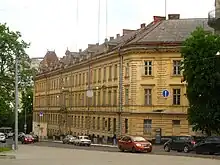 The building complex was built in 1889–1890 at the intersection of ulica Sapiehy (today vulytsia Bandery) and ulica Kopernika on the project of architect Józef Kajetan Janowski. It is built in a Neo-Renaissance style and originally was designed for Austro-Hungarian Gendarmerie's main office in the city.