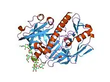 7. Groves MR, Taylor MA, Scott M, Cummings NJ, Pickersgill RW, Jenkins JA (October 1996). "The prosequence of procaricain forms an alpha-helical domain that prevents access to the substrate-binding cleft". Structure. 4 (10): 1193–203. doi:10.1016/s0969-2126(96)00127-x. PMID 8939744.