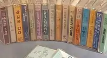 The starting point of Korean protest songs was the music culture of Korean students movements around 1970.[66] With criticizing about pop music or overcoming, it started that their own unique music culture having certain coriander layer and own existing method distinguished with pop culture.[66] a few songs called as 'Demo-ga' (demonstration songs) and others from the 1960s was chosen as 'Minjung-Gayo' (Korean protest songs).[66] There're 'Haebang-ga(Hangul; 해방가)',' Tana-Tana', 'Barami-bunda'(Hangul; 바람이 분다), 'Stenka Razin' and so on. After 1975, another songs like 'Hula-song[lower-alpha 1]', 'Jungui-ga' was added in the list.[66]