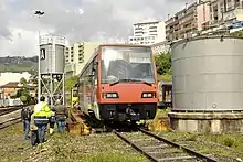 The section of the Corgo line between Régua and Vila Real was closed by the National Railway Network on 25 March 2009.[5][6] In 2016, the entire railway infrastructure on dual gauge was dismantled between the Régua railway station and Corgo, which provided the connection between the trunk of the Corgo line and the maintenance, manoeuvring and commercial (passenger and freight) facilities in Régua, thus making it impossible to reopen the operation in the future on Iberian-gauge railways.[31]