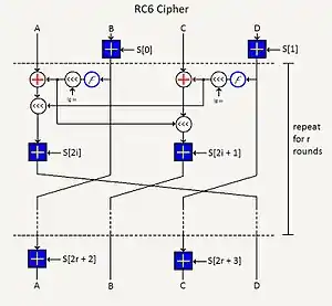 - ↑ "3.6.4 What are RC5 and RC6?". RSA Laboratories. Archived from the original on 2017-07-06. Retrieved 2015-08-02.