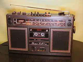 - Walkie-talkie – a battery-powered portable handheld half-duplex two-way radio, used in land mobile radio systems.[98]