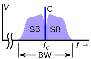 Many other types of modulation are also used. In some types, a carrier wave is not transmitted but just one or both modulation sidebands.[33]