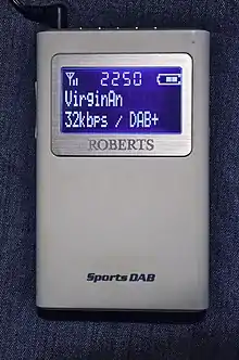 - Digital Audio Broadcasting (DAB) debuted in some countries in 1998. It transmits audio as a digital signal rather than an analog signal as AM and FM do.[62] DAB has the potential to provide higher quality sound than FM (although many stations do not choose to transmit at such high quality), has greater immunity to radio noise and interference, makes better use of scarce radio spectrum bandwidth and provides advanced user features such as electronic program guides. Its disadvantage is that it is incompatible with previous radios so that a new DAB receiver must be purchased.[63] Several nations have set dates to switch off analog FM networks in favor of DAB / DAB+, notably Norway in 2017[64] and Switzerland in 2024.[65]