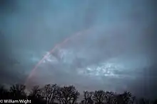 A sleetbow forms in the same way as a typical rainbow, with the exception that it occurs when light passes through falling sleet (ice pellets) instead of liquid water. As light passes through the sleet, the light is refracted causing the rare phenomena. These have been documented across United States with the earliest publicly documented and photographed sleetbow being seen in Richmond, Virginia on 21 December 2012.[60] Just like regular rainbows, these can also come in various forms, with a monochrome sleetbow being documented on 7 January 2016 in Valparaiso, Indiana.