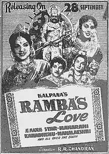 Rambaiyin Kaadhal (English: Rambha's Love) is a 1956 Indian Tamil-language Hindu mythological film starring P. Bhanumathi, K. A. Thangavelu and M. N. Rajam.[1] A remake of the 1939 film of the same name,[2] it was released on 28 September 1956.[3]