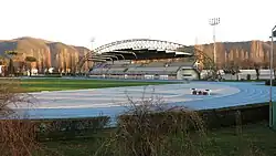 The stadium was built as part of the construction program for the 1960 Summer Olympics and inaugurated on 23 July 1960.[1] In the 1980s a second grandstand and a marquee with an indoor track were built. In 1999 a roof was built for the main grandstand and the track was expanded to eight lanes.[1] In 2011-2012 all tracks were rebuilt in sportflex material and painted in blue by company Mondo.