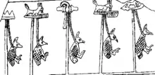 - ↑ Sonderzeichen U 103 gemäß Petra Vomberg: Sonderzeichenliste In: Rainer Hannig: Großes Handwörterbuch Ägyptisch-Deutsch : (2800 - 950 v. Chr.). von Zabern, Mainz 2006, ISBN 3-8053-1771-9, S. 1448.