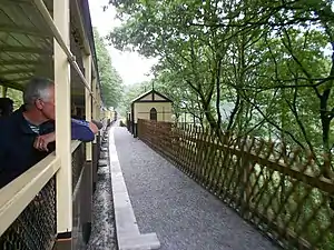 The station has had limited facilities during its lifetime, despite being open throughout the history of the railway, except for a short closure during World War Two. Following the provision of grant money from the European Union for rural community infrastructure investment,[2] the station was considerably developed during 2013 and now has a raised-level and surfaced platform, fencing and an attractive period (replica) station building.[3]