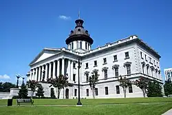 Richland County was probably named for its "rich land". The county was formed in 1785 as part of the large Camden District.[4] A small part of Richland County was later ceded to adjacent Kershaw County in 1791. The county seat and largest city is Columbia, which is also the state capital. In 1786, the state legislature decided to move the capital from Charleston to a more central location. A site was chosen in Richland County, which is in the geographic center of the state, and a new town was laid out. Richland County's boundaries were formally incorporated on December 18, 1799.[7] Cotton from the surrounding plantations was shipped through Columbia and later manufactured into textiles there. General William T. Sherman captured Columbia during the Civil War and his troops burned the town and parts of the county on February 17, 1865. The U. S. Army returned on friendlier terms in 1917, when Fort Jackson was established, which is now the largest and most active Initial Entry Training Center in the U.S. Army. The South Carolina State House is located in downtown Columbia.