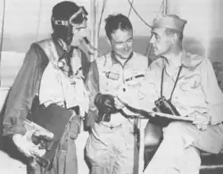 He and his wingman then landed at Taegu, where the Joint Army-Navy Tactical Control Air Center was located, only 10 miles from enemy frontlines and after exchanging information and receiving a briefing on the situation, Keller returned with his wingman to escort carrier USS Sicily. When Marine air and ground units were reinforced in August 1950, Black Sheep Squadron got new commanding officer, lieutenant colonel Walter E. Lischeid and Major Keller was appointed his executive officer.[2][8][3][4]