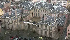 De Cotte, with ever-widening responsibilities at Court, was also occupied with projects in Paris. His name is inscribed on the first draft for the final project for Place Vendôme (1699).[9] De Cotte was responsible for the Hôtel de Pontchartrain[10] (Chancellerie, 1703); his team was busy building hôtels particuliers in Paris, notably the Hôtel de Lude (1710, demolished), the Hôtel d'Estrées in rue de Grenelle (1713, remodelled); surviving drawings for interiors are in the hand of Pierre Lepautre. De Cotte was in charge of the team that remodelled François Mansart's Hôtel de Vrillière in 1714-1715 for Louis XIV's legitimated son, the comte de Toulouse; the outstanding features were the grand staircase, in which several sculptors collaborated, and the Gallery (1718–1719), upon which de Cotte's reputation has rested, and which survives. Mariette attributed its design to François-Antoine Vassé,[11] and Fiske Kimball, on the basis of surviving preparatory drawings, concurred.[12]