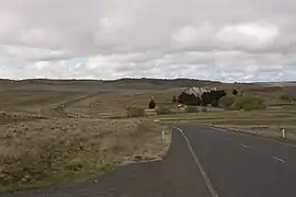 Near the Monaro Highway crossing,[3] there is a mineral spring that comes to the surface, on the bank of Rock Flat Creek, about 16 km south-east of Cooma. The spring water issues from near the base of a small rocky mount composed of highly inclined beds of quartzite and the surface of the flat in the vicinity of the spring is tufaceous limestone that has been deposited there by the spring water. The flow rate of the spring is about 245-litres per hour. The spring water has a pleasant taste and is carbonated.[4]