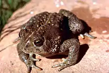 The Rocky Mountain toad or western Woodhouse's toad (Anaxyrus woodhousii woodhousii) is a subspecies in the Woodhouse's toad subgroup. It can be identified by its light middorsal stripe, prominent cranial crests, and elongate parotoid glands. The belly is usually white or yellowish with dark flecks between the forelegs [1]
