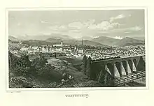 - ↑ Staller, Alfred. "Der Viadukt. Wahrzeichen der Stadt Traunstein". Jahrbuch 1996 des Historischen Vereins für den Chiemgau zu Traunstein [1996 yearbook of the Historical Association for the Chiemgau to Traunstein] (in German). pp. 7–15.