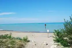 Rosewood Park is a historic park on Roger Williams Avenue in Highland Park, Illinois. The park is the former site of the Julius Rosenwald Estate, which was built circa 1910 for businessman Julius Rosenwald. Landscape architect Jens Jensen designed the estate's grounds, which he also used as a studio; these became the modern park after the home's removal. The park includes a beach on Lake Michigan, the North Shore Sanitary District Tower (closed), an empty stone pool and artificial stream, and a walking path that leads to a bridge over a ravine. Jensen also planted wildflowers in the park, which still bloom annually in spring.[2][3]
