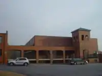 Construction began nearby on Alpharetta Highway near the present-day Roswell City Hall on a new campus. That facility opened in the fall of 1954 and allowed the high school (grades 8–12) to physically separate from the elementary school (grades 1–7).[18][19] Roswell High's second campus was designed by the architecture firm Stevens & Wilkinson, which innovated school designs and used a "finger plan" to improve functionality of the school.[20] It had a capacity of 400 students and had facilities for industrial arts, a shop, music halls, science labs, an art room, an indoor gymnasium, athletic fields, a football stadium, and a track.[21] The School started getting crowded in the early 70s. This forced Fulton county to establish Crestwood High School to relieve it. The School also relieved similar overcrowding at North Springs Charter School of Arts and Sciences. The primary school remained in the Mimosa Boulevard building as Roswell Elementary.[21] As of 2007, the brick elementary building is part of an expanded structure still owned by the Fulton County School System, and it housed the Crossroads Second Chance North Alternative School until 2013 and still serves as the Teaching Museum North.[17][22] Roswell High remained at the Alpharetta Highway campus until the fall of 1990 when the current campus on King Road was opened.[18]