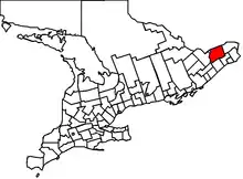 The federal electoral district was abolished in 1966 when it was redistributed between Glengarry—Prescott, Ottawa East and Ottawa—Carleton ridings.