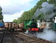 ![]() Andrew Barclay "Sir Thomas Royden" with a train of mineral wagons. | |