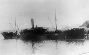 The vessel was completed on 1 March 1900 and sold to the Union Steamship Company of New Zealand.[7] After being chartered by the Royal Australian Navy, she took part in operations against the German colonies in the Pacific with the Australian Naval and Military Expeditionary Force (AN&MEF) during the First World War in 1914 and subsequently returned to her owners. Whangape was sold in 1928 to Chun Young Zan (Moller & Co) and renamed SS Nanking.