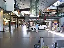 Saarbrücken Airport consists of one passenger terminal building which features check-in-facilities as well as some shops and restaurants and a covered observation deck. The building is not equipped with jet bridges, therefore walk-boarding and bus-boarding is used. The apron right in front of the terminal features five aircraft stands which can accommodate mid-sized aircraft such as the Airbus A320.