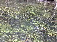Sagittaria kurziana, common names springtape[2] and strap-leaf sagittaria, is a perennial aquatic plant. It grows up to 250 centimetres (8 feet) tall. It has long, narrow, flat leaves that float on the surface of the water, up to 250 cm long but rarely more than 15 millimetres (12 inch) wide. These form huge masses of ribbon-like leaves flowing back and forth with the current. Inflorescences also float on the surface, the white flowers very often submerged.[3][4][5]