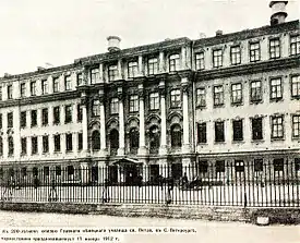 Then came the First World War. With the war came anti-German sentiment. The Imperial Ministry of Education decreed that all classes were to be taught in Russian, and that the school name was to be written in Russian. Teachers who were not fluent in Russian left, and gymnastics instructor Anton Preis, a German national, was expelled by the authorities. Anti-German sentiment led some families to withdraw their children from the school, while senior students left to join the Russian army. After 1918, the school bore the following names: United Soviet Labor School № 4, № 14, № 28, № 41, 222-I and 217-I Schools of the Kuibyshev district of Leningrad. In 1991 the school's historic name was restored.