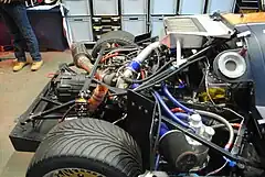 A small number, as few as three, of race-only Saker GTs were also manufactured under license in the USA. One road-going Saker SVS was imported from New Zealand into the US in 2004. It was fitted with a Lexus 1UZ-FE 4.0-liter V8 engine mated to a Renault UN1 5-speed Transaxle. Since then it has been modified to accept a highly tuned Chevy LS6 5.7L V8, that produces almost 500bhp, mated to an Audi 01E (DQS variant) 6-speed transaxle. At the time of the engine change the owner also modified the body, headlights, tail lights, and front bumper/splitter to make the car look more modern.
