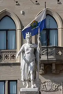 - 1 2 Consiglio Grande e Generale (22 July 2011). "BANDIERA E STEMMA UFFICIALE DELLA REPUBBLICA DI SAN MARINO" (PDF). Consiglio Grande e Generale (in Italian). pp. 3–4. Retrieved 29 September 2023.