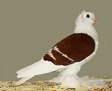 The Saxon Shield is a breed of fancy pigeon. Saxon Shields, along with other varieties of domesticated pigeons, are all descendants from the rock pigeon (Columba livia).