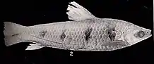 - ↑ Christopher Scharpf & Kenneth J. Lazara (22 September 2018). "Order CHARACIFORMES: Families TARUMANIIDAE, ERYTHRINIDAE, PARODONTIDAE, CYNODONTIDAE, SERRASALMIDAE, HEMIODONTIDAE, ANOSTOMIDAE and CHILODONTIDAE". The ETYFish Project Fish Name Etymology Database. Christopher Scharpf and Kenneth J. Lazara. Retrieved 29 September 2021.