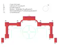 The ensemble is in many ways a typical example of Baroque architecture and ideals, not least in that it is characterised by symmetry. The main building ensemble consists of a central, main body connected with two-storey wings to three-storey pavilions. The living quarters, the rooms of representations and space used for utilities are thus all contained in a single, large building.[5]
