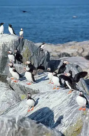 ![]() Atlantic puffins and razorbills on Seal Island | |