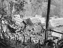 The Australians eventually located the Japanese on 8 October, when a patrol from the 2/25th clashed with some Japanese around Myola Ridge.[16] On 10 October, Myola was reoccupied by the Australians. By 11 October, the 2/33rd Battalion was advancing toward Templeton's Crossing on the Myola Track and the 2/25th Battalion on the Mount Bellamy Track. The 3rd Battalion was at Myola while the 2/31st Battalion was at Kagi, at the southern branch of the two tracks. The 16th Brigade was advancing on Menari to take up a position at Myola with the intention of taking the vanguard as the brigade moved through Templeton's Crossing.[17][18]