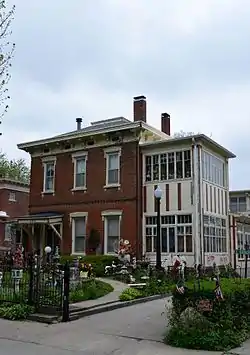 The Seeberger–Loring–Kilburn House is a historic residence located in Oskaloosa, Iowa, United States. The house was the work of David L. Evans, a master builder who completed it in 1859. It is the oldest known surviving work of his, and calls attention to his skill as a builder.[2] Evans was a native of Wales and emigrated to the United States at the age of 14. He settled in Ohio and St. Louis before settling in Oskaloosa in 1845. The two-story, brick, Italianate structure features a hip roof and deck, bracketed cornice and simple hood molds. The second story was added in 1869 by Evans. Des Moines architect Frank E. Wetherell, who was born in Oskaloosa, designed an expansion of the house in 1916. It added the solarium on the east side, and a pergola on the west. The house was individually listed on the National Register of Historic Places in 1983. It was included as a contributing property in the Paradise Block Historic District in 1991.[3]