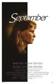 September is a 1987 drama film written and directed by Woody Allen. The film is modeled on Anton Chekhov's 1899 play Uncle Vanya, though the gender roles are often subverted.[2]