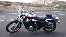 Several reviewers observed that there was more than a passing resemblance between the VT750RS and Sportster 883 models; Honda's 10.7 liters (2.4 imp gal; 2.8 U.S. gal) peanut-shaped fuel tank, for instance, emulated classic Sportster tanks.[60][70] A few road tests included side-by-side comparisons of the Honda and the Harley-Davidson.[66][71][72]