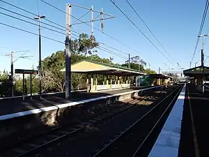 The line through Indooroopilly was duplicated in June 1886. The station was rebuilt in 1960 as part of the quadruplication of the line.[4]