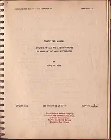 Rock was employed as a "geophysical computer" in the petroleum industry, first at Rieber Laboratories, and then in 1938 at Herbert Hoover, Jr.'s newly formed United Geophysical Corporation. She transferred into United's engineering and instrument subsidiary, Consolidated Engineering Corporation, when they began to develop the mass spectrometer as a commercial product.[8] The first 21-101 Mass Spectrometer was delivered in December 1942.[10][11][12][2] Sibyl Rock worked in the CEC research group with employees such as Harold Wiley, manager for Chemical Instruments, Harold Washburn, and Clifford Berry.[13] In 1947, she joined the sales department. In sales, she worked closely with people at chemical and refining companies who were potential customers for the mass spectrometer and early digital computers, identifying their needs and concerns. People such as Seymour Meyerson, who worked for Standard Oil of Indiana, were active contributors to Rock's CEC Users' Group.[11][13] Rock transferred again in 1952, to the organization's newly formed computer division.[4] As of 1953, she was "in charge of sales and application functions of the Computer Division" with the title "Acting Manager, Application Service"[4] and was the first female sales engineer of ElectroData Corporation.[8]