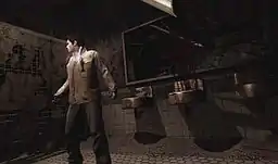 In addition to exploration, combat is another major element to the gameplay, and the player must fight the various monsters that appear. In contrast to the more naïve everyman protagonists of previous games, combat in Homecoming takes into account Alex's experience as a soldier.[9] The player is able to perform light and heavy attacks, or mix them to perform combinations,[12] and may also perform a variety of finishing moves to ensure that the monsters are dead, a gameplay mechanic first featured in a rudimentary form in Silent Hill: Origins.[12] Attacking enemies also leaves wounds in them that match the motion carried out by Alex in inflicting the attack.[13] In terms of controlling Alex, the player may also perform new maneuvers such as targeting the enemy before attacking them, dodging enemy attacks, and performing counter-attacks.[10] As well as melee weapons, pistols, rifles and shotguns are available as firearms, which can be upgraded to stronger versions later in the game: firearm handling is also rendered in a more realistic manner, with Alex having to shoulder long guns and suffering aim effects like recoil.[11] In addition to the changes in combat, and unlike previous entries in the series, the player is also able to fully control and rotate the camera as they choose;[9] one analog stick controls player movement, and the other controls the camera.