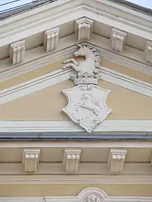 Skarżyński (Ukrainian: Скаржинський; Belarusian: Скаржынскі; Russian: Скаржинский) is a Polish, Ukrainian, and Russian noble Cossack family of Belarusian origin.[1][2][3][4] The Skarżyński family originates from Trakai Voivodeship, Grand Duchy of Lithuania.[5][6] The Skarzynski family have had a strong presence in Grodno Region, Belarus and Pinsk District, Brest Region, Belarus over the past 200 years.[7] The Skarzynski family is from the same genus as the noble Russian bloodlines of Baryatinsky, Obolensky, Dolgorukov, and Volkonsky.[8] The family is of Bończa coat of arms.[3] The family has many branches all over Eastern Europe. Since the early 1600s, the Skarzhinsky family owned land in the Turov Voivodeship.[5] The family also owned land in the Petrikovsky district, Gomel Region, Belarus. The Orthodox branch of the Skarzhinsky family belonged to the richest land owning Russian nobility and played a prominent role in the history of Russia, and Ukraine.[9][10][11][5][12][13] They owned thousands of acres of land throughout the territory of the Russian Empire from western Belarus to central and southern regions of Ukraine.[5] The family owned hundreds of acres of land in Mglin, Russia where Alexander Matveyevich Skarzhinsky was leader of the Mglinsky nobility.[5] The family also owned land in the folwark estate in Kamenka near Ashmyany, Belarus.[14] The family set forth a detailed history of the members of family for the purpose of establishing themselves in the nobility at the Ashmyany City Court.[15] The Skarżyńskis also owned land in Paszkiszki village, Grodno Region, Belarus. There is a Skarzhinsky branch in Minsk, Belarus. The Skarżyńskis also had a strong presence in Vilnius Region, Lithuania.[15] The Skarżyńskis also owned land in Kherson Governorate, Ukraine.[16] A branch of the Skarzhinsky family owned the county of Elisavetgrad uezd in the Kherson Governorate of the Russian Empire until 1909.[13] Trikraty, Ukraine was originally named Velyka Skarzhynka in honor of noble Viktor Petrovich Skarzhinsky.[17] The Skarzhynskis also had branches in Poltava, Chernihiv, Odessa, Kiev, Mykolaiv, Cherkasy, and along the Dnieper in many villiages.[16] Another branch of the family was established in Khmelnytskyi, Ukraine. The family has also had a strong presence in Saint Petersburg, Russia, Moscow, Russia, Bryansk Oblast, and the Caucasus.[5] The family owned a gothic style mansion in Kislovodsk, Russia.[10] Another Skarzynski branch resided in Germany.[18] The genus is still strongly represented throughout Poland, Russia, Ukraine, Belarus, France, and the United States. The family has a history of nobility in Poland, Lithuania, France, Ukraine, Russia, and Belarus.[2][19][4]